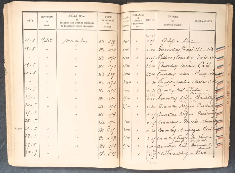 carnet de vol de Pierre : missions de couverture Les avions qu’il a pilotés : 14/05/1940 : Marcel Bloch 152, à Étampes, vers Buc