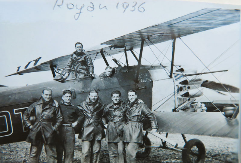 école Caudron, à Ambérieu Extrait du récit de Pierre Patoor : "Un amour de locomotive" : "Lien" … « Arrivé à Villacoublay, la rencontre avec les anciens pilotes de la 1ère escadre ne fut pas sans difficulté ! Les nombreux avantages qui nous avaient été accordés pour obtenir la qualification de « pilote de chasse » avaient soulevés une grande jalousie : nous avions été « avantagés » par le gouvernement de l’époque, qui voulait des pilotes de chasse en plus, ce qui était mal supporté par les « anciens ». Tous les entraînements à l’acrobatie nous réunissaient devant les hangars ou l’on avait installé des fauteuils pour que les chefs de patrouille soient confortablement installés afin de suivre les vols d’entraînement quotidiens. En fait ce sont nos mécaniciens, qui, tout en nous attachant nos bretelles de sécurité nos expliquaient les exercices d'entraînement que nous allions donner en spectacle et nous indiquaient même la manière d’effectuer les figures ! L’ambiance s’améliora très vite, notamment grâce aux « arrosages ». A cette époque, les bars des escadrilles étaient sous la responsabilité des jeunes pilotes !… Nous avons quitté Royan avec une foule de souvenirs après le grand examen de fin de stage. Nous étions passionnés d’aviation, persuadés dès le départ que nous avions une mission d’importance : Défendre notre pays ! »...