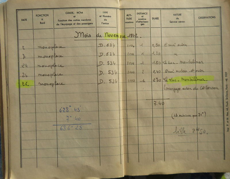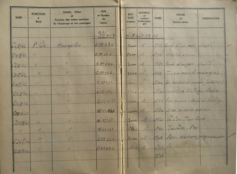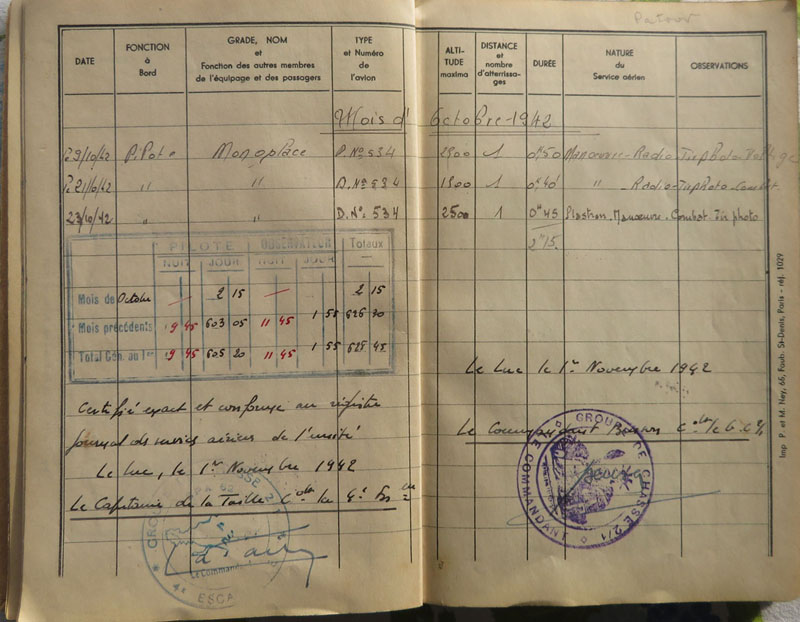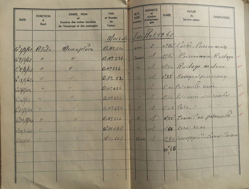 escadrille, un Dewoitine 510 Les avions qu’il a pilotés : 06/09/1939 : Dewoitine 510, à Étampes Montdésir 04/11/1939 : Marcel Bloch 152, à Étampes, vers Buc