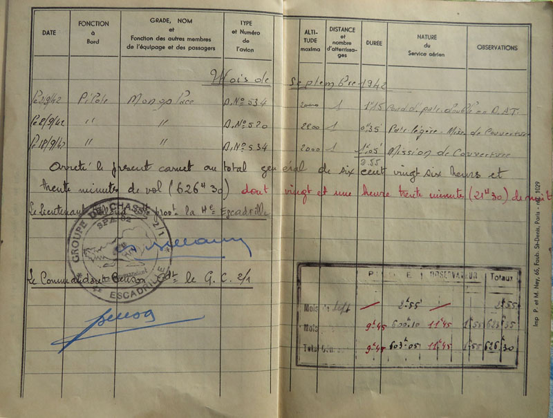 carnet de vol de Pierre : missions de couverture Les avions qu’il a pilotés : 14/05/1940 : Marcel Bloch 152, à Étampes, vers Buc