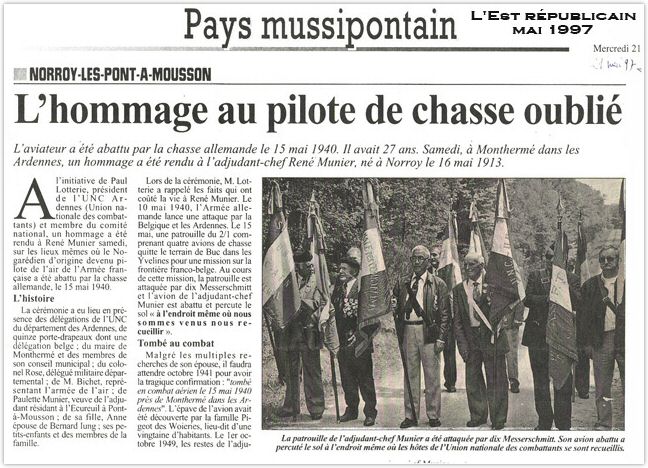 Lire le site Internet dédié à René MUNIER, mission du 15 mai 1940
