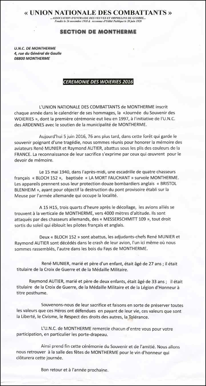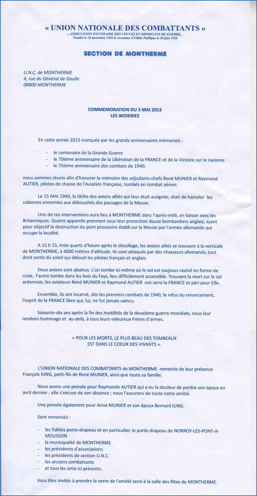 Raymond AUTIER, abattu lors de cette même mission. Cette cérémonie annuelle